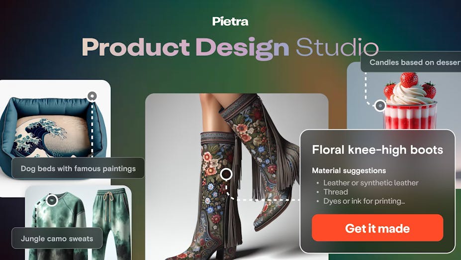 AI product design is transforming the way businesses approach their design workflows. With Pietra Design Studio, you can harness the power of AI to generate stunning designs and variations in mere seconds, eliminating the need for time-consuming manual adjustments. Whether you start with a product description, style reference, sketch, or existing design, our platform provides a seamless and intuitive experience to bring your creative vision to life.