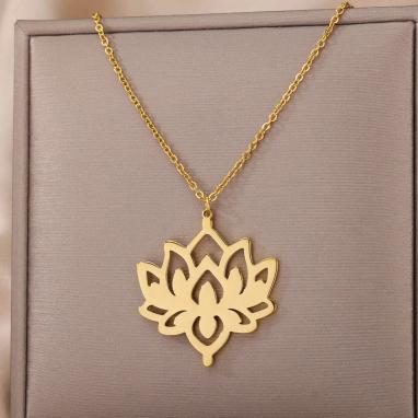 Keyword: Lotus Flower Pendant Necklace, Hollow Lotus Anklet for Women and Girls