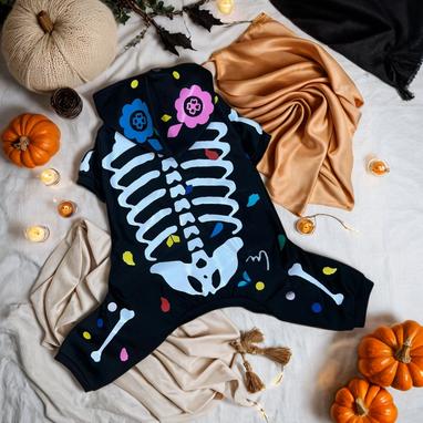 Make your pet the center of attention this Day of the Dead or Halloween with the Alebrije Costume. Inspired by alebrijes and the Mexican celebration of the Day of the Dead, this costume combines the magic of bright colors and a skeleton design that highlights the folklore and creativity of this holiday.