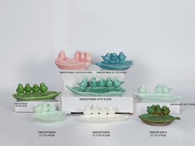30 daysBird Sculpture Dish 4 Birds on Ceramic Leaf Bowl Bird Bath Feeder
