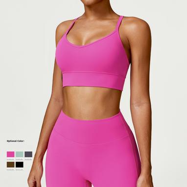 Cross Back Adjustable Fixed Pads Sports Bra Top High Impact Workout Gym Fitness Sports Wear For Women