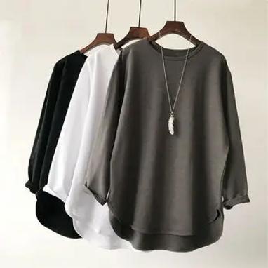 7 daysCurved Hem Long Sleeve Cotton T-Shirt