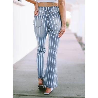 7 daysFashionable vertical striped ripped flare jeans