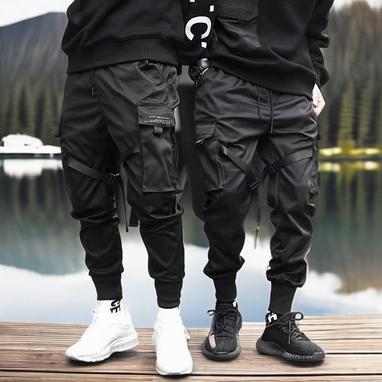 Men's elastic drawstring cargo jogger pants