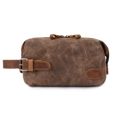 Oem And Odm Custom Logo Personalized Men Waxed Canvas Toiletry Travel Dopp Kit Wash Bag Big Large Capacity Makeup Bag