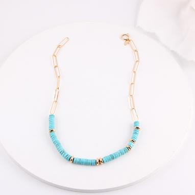 Turquoise stone and brass disk necklace