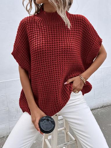 8 daysWomen's Oversized Batwing Sleeve Mock Neck Sweater Vest Sleeveless Pullover Knit Sweaters